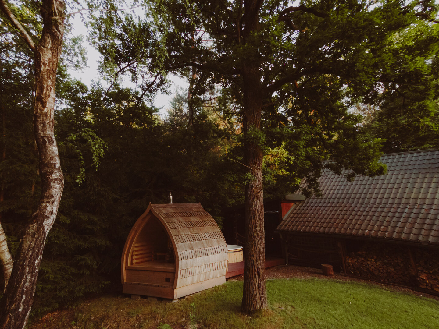 Do Waszej wyłącznej dyspozycji oddajemy zagospodarowany ogród, z leżakami do opalania, miejscem na ognisko i grill oraz stołem do letniego biesiadowania, jak również ogrzewaną drewnem balię z jacuzzi i drewnianą, przeszkloną saunę, z zapierającym dech w piersiach widokiem na las. W ogrodowej strefie wellness możecie do woli rozpieszczać ciało i zmysły.